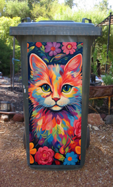 Colourful kitty wheelie bin sticker