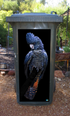 Red tailed cockatoo dressed in black wheelie bin sticker
